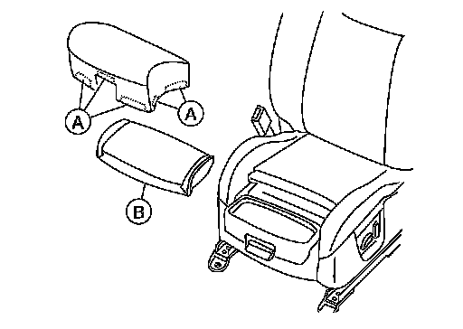 c.Hold the seatback board at the side hook locations (B) and push in the side hooks to release them from the seatback frame, then pull it rearward.