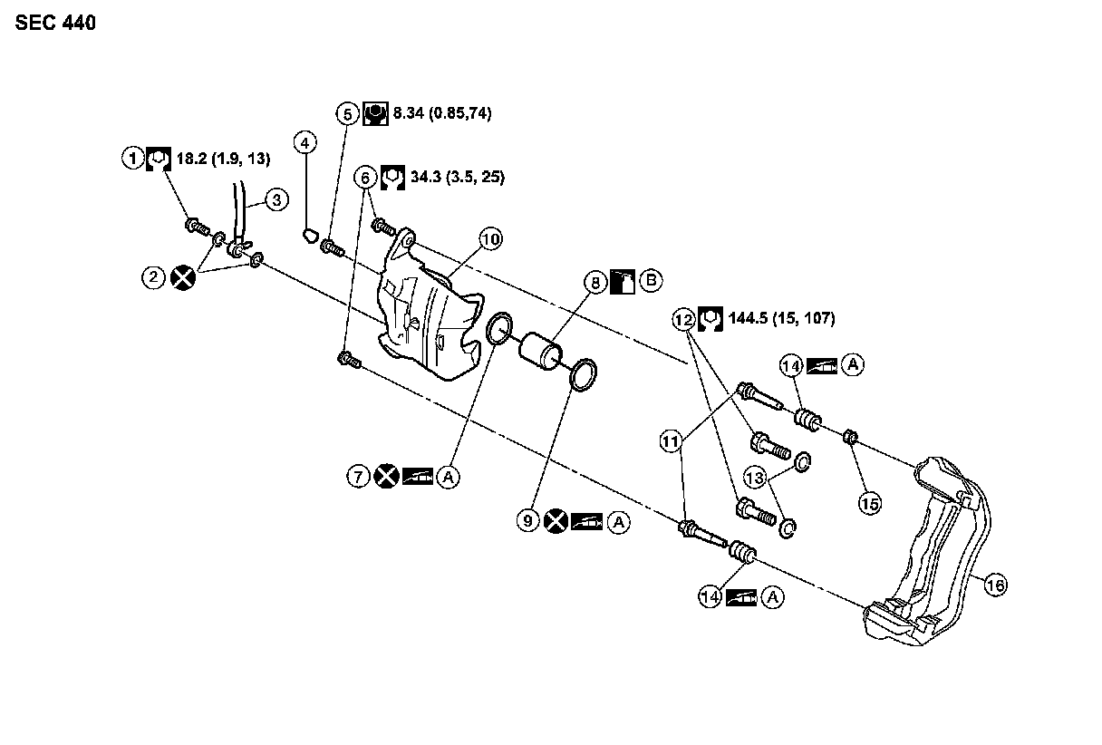 1.Remove the sliding pin bolts, and then remove the cylinder body from the torque member.