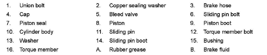 2.Remove the sliding pins, bushing and sliding pin boots from the torque member.