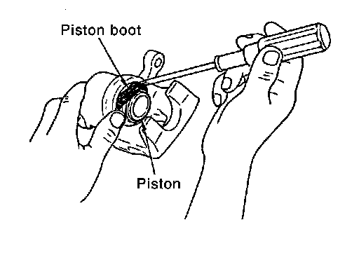 2.Apply rubber grease to new piston boot and apply brake fluid to the piston. Cover the piston end with the piston boot, and then install the cylinder side lip on the piston boot securely into a groove on the cylinder body.