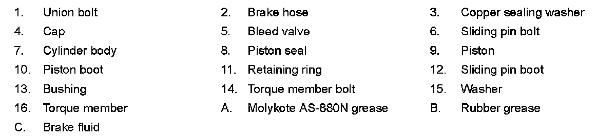 1.Remove the sliding pin bolts, and then remove the cylinder body from the torque member.