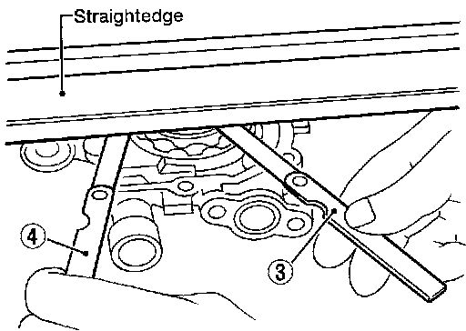 - Measure clearance with feeler gauge and straightedge.