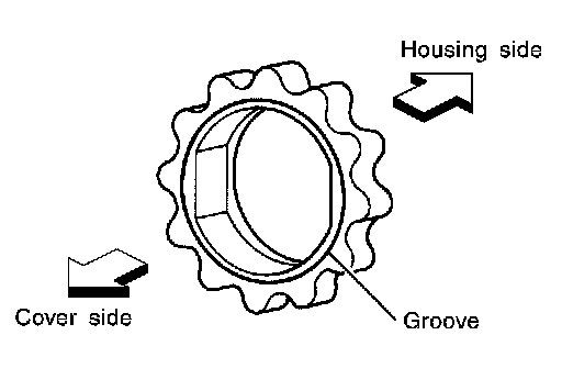 - Assemble the outer rotor in the correct vane orientation to rotation as noted during disassembly and the inner rotor with the groove on the oil pump cover side.