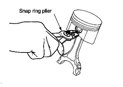 c.Install the snap ring into the front of the piston pin-groove.
