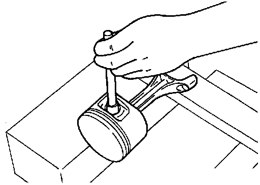 c.Push out the piston pin with a suitable tool, with an outer diameter approximately 20 mm (0.8 in).