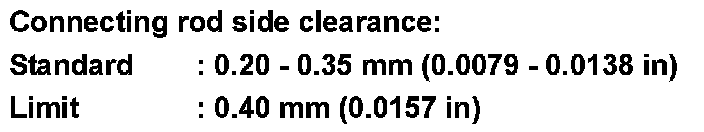 - Check the connecting rod side clearance. If beyond the limit, replace the connecting rod and/or crankshaft.