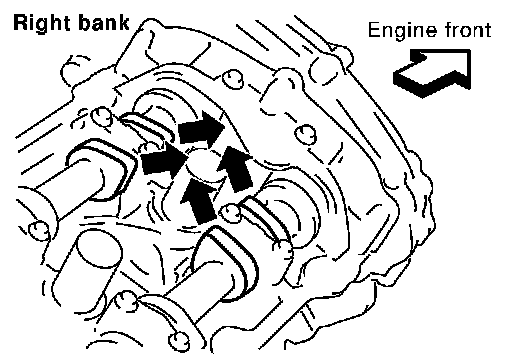 b.Check that intake and exhaust camshaft lobes on No. 1 cylinder (right bank of engine) are located as shown.