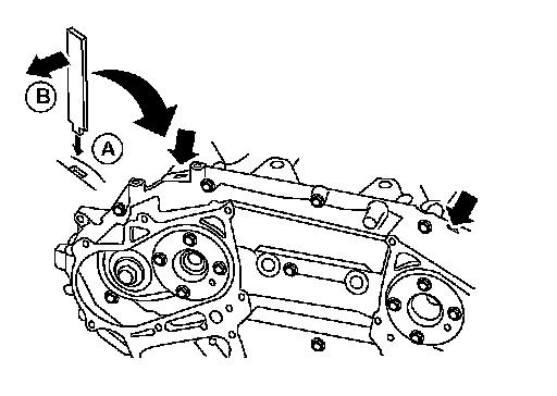 c.Pry off the case by moving the suitable tool (B) as shown.