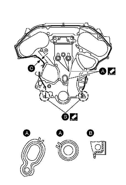 4.Apply Silicone RTV Sealant to front timing chain case as shown.