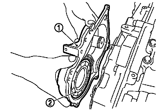 - When setting the valve timing control cover in position by hand, if valve timing control cover is not centered with the valve timing case, the dowel pin of the magnet retarder may not be aligned with the dowel pin holes of the cover. In this case, return to step "b".