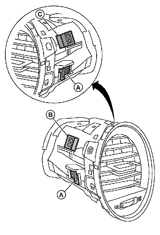 - The RH upper clip (C) will bend when the side ventilator grille is removed.
