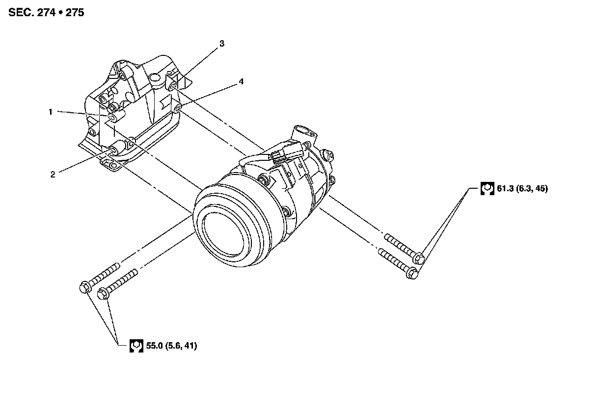 CAUTION: For installation, tighten the compressor bolts in the order as shown.