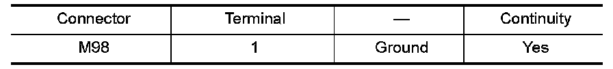 2.Check continuity between A/C and AV switch assembly harness connector M98 and ground.