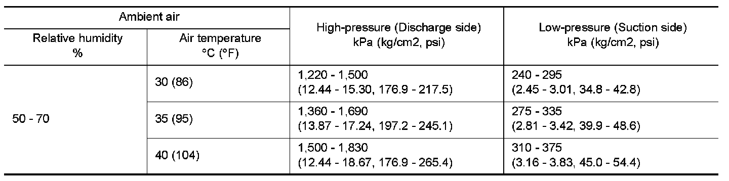 Ambient Air Temperature-to-operating Pressure Table
