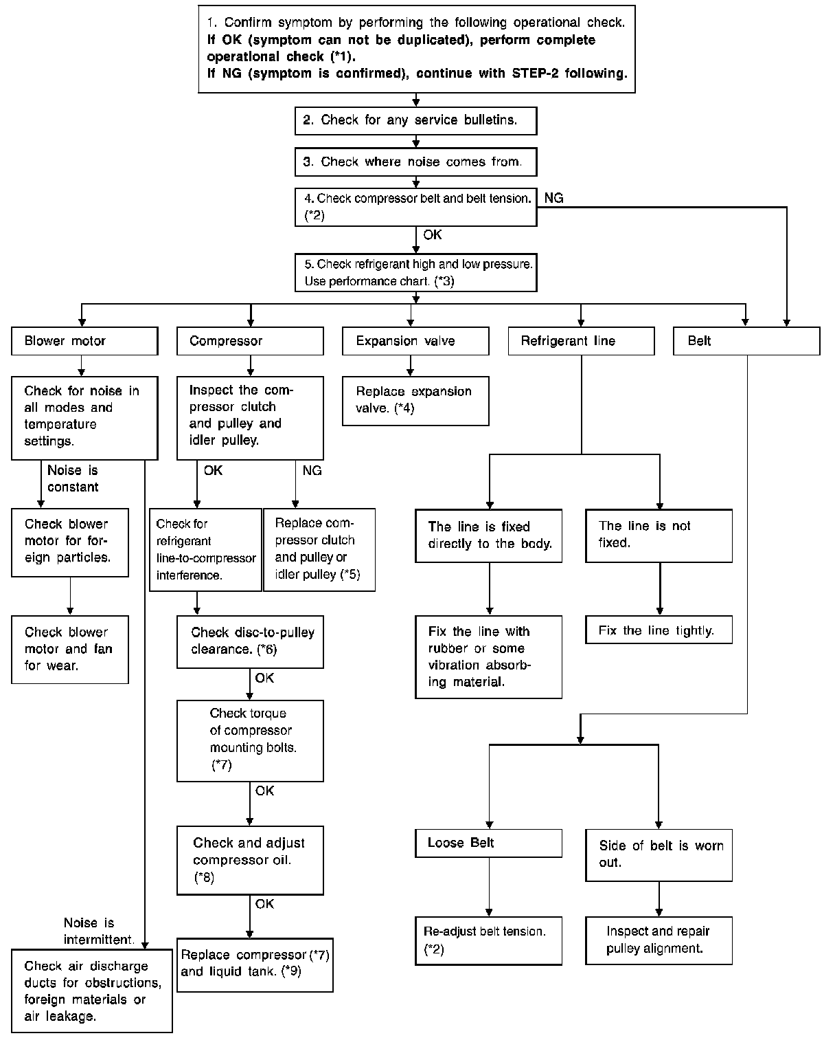 - Noise is heard when the A/C system operates.