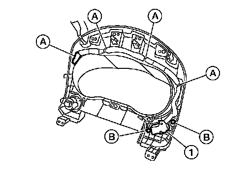 4.Remove the combination meter control switch screws (B) and remove the combination meter control switch (1).
