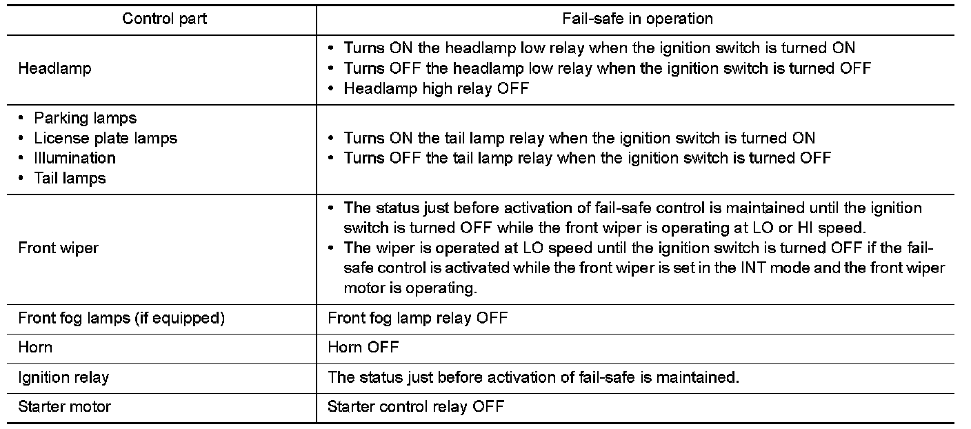 When CAN communication with ECM and BCM is impossible, IPDM E/R performs fail-safe control. After CAN