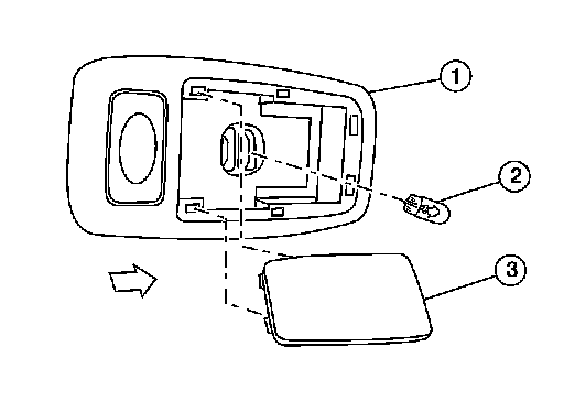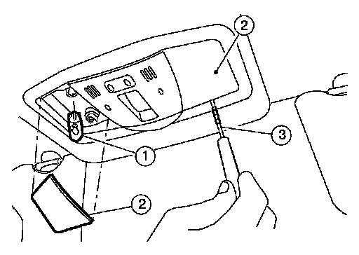 1.Using a suitable tool (3), remove the front room/map lamp lens (2).