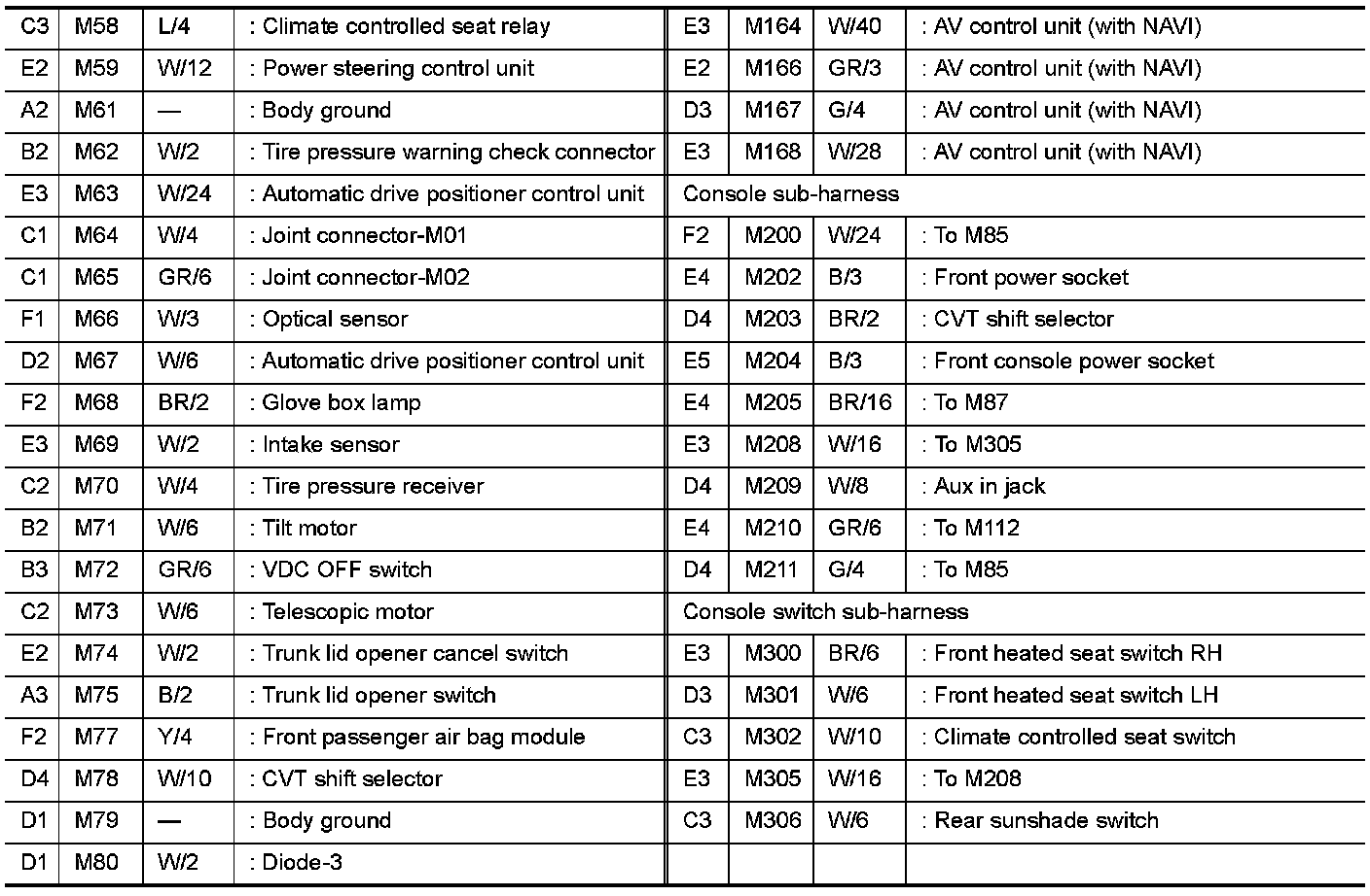 - Main Harness, Console Sub-harness and Console Switch Subharness