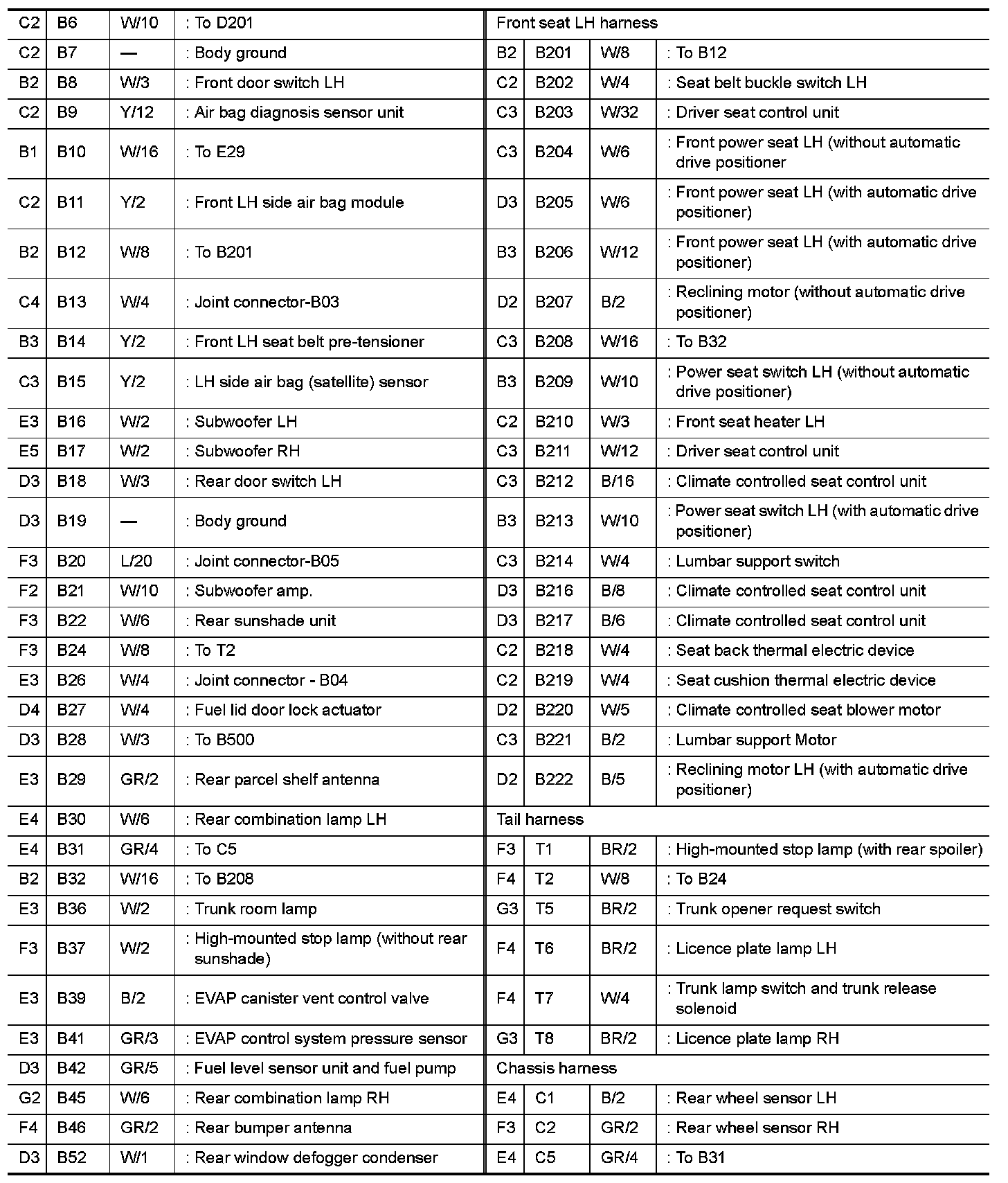 - Body Harness, Front Seat LH Harness, Tail Harness and Chassis