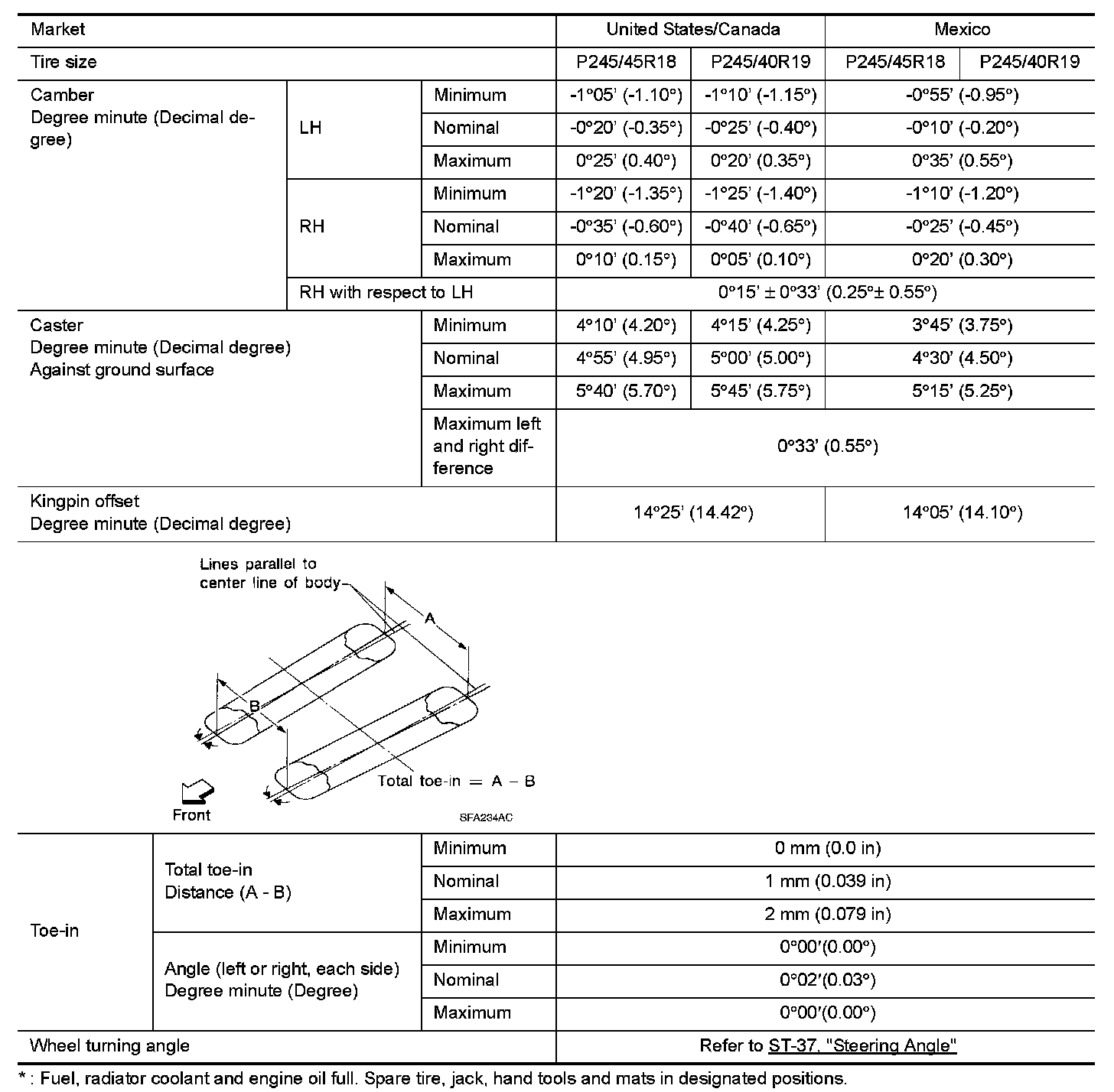 Wheel Alignment (Unladen*)
