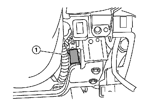 2.Locate tire pressure receiver (1) to the right of the steering column and disconnect tire pressure receiver electrical connector.