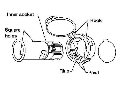 6.Remove ring from power socket finisher while pressing pawls.