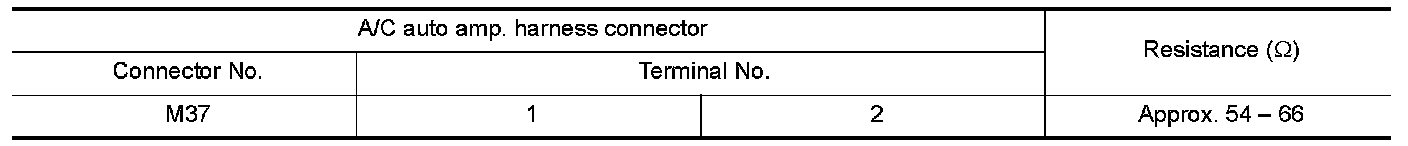 2.Check the resistance between the A/C auto amp. harness connector terminals.