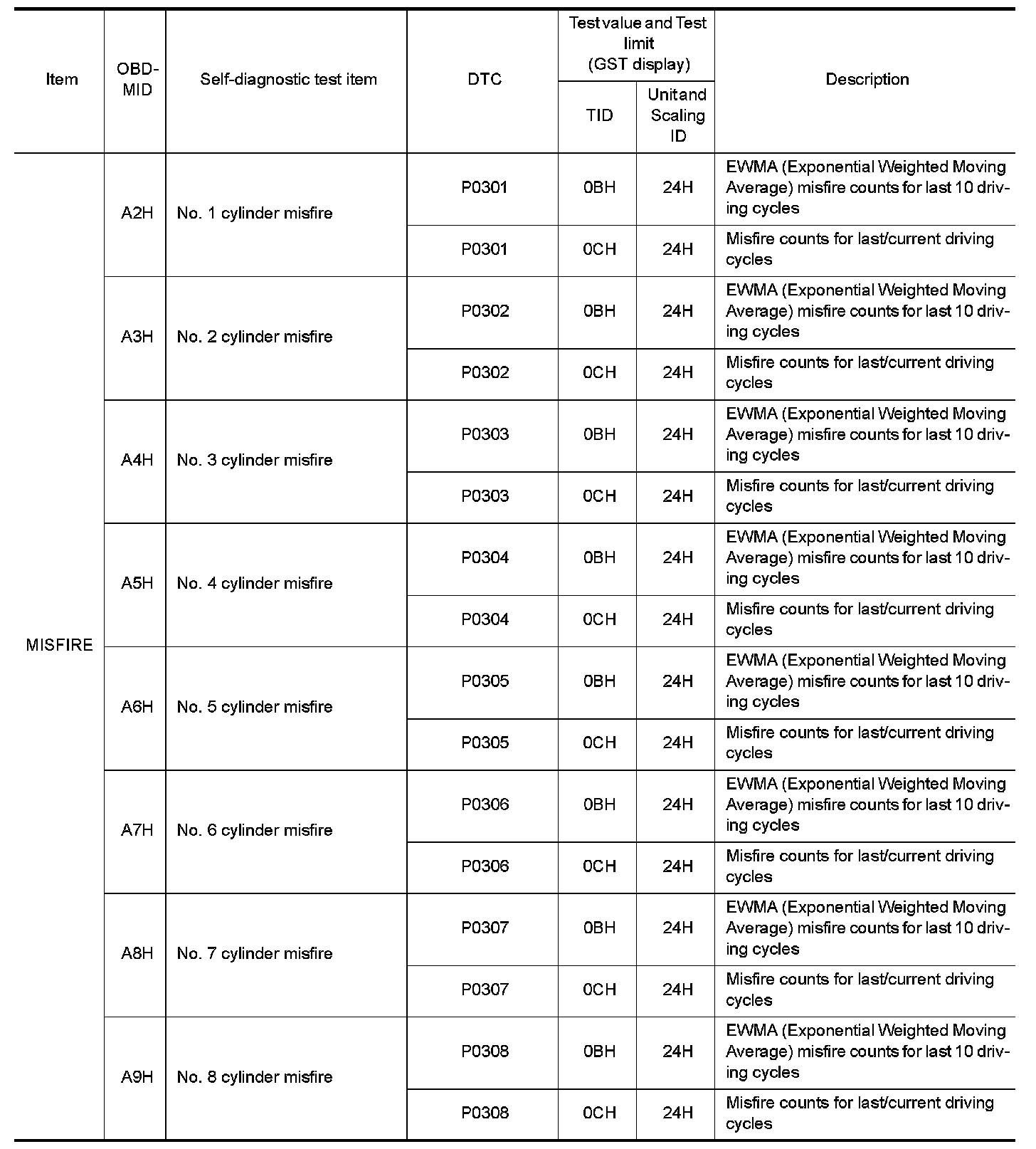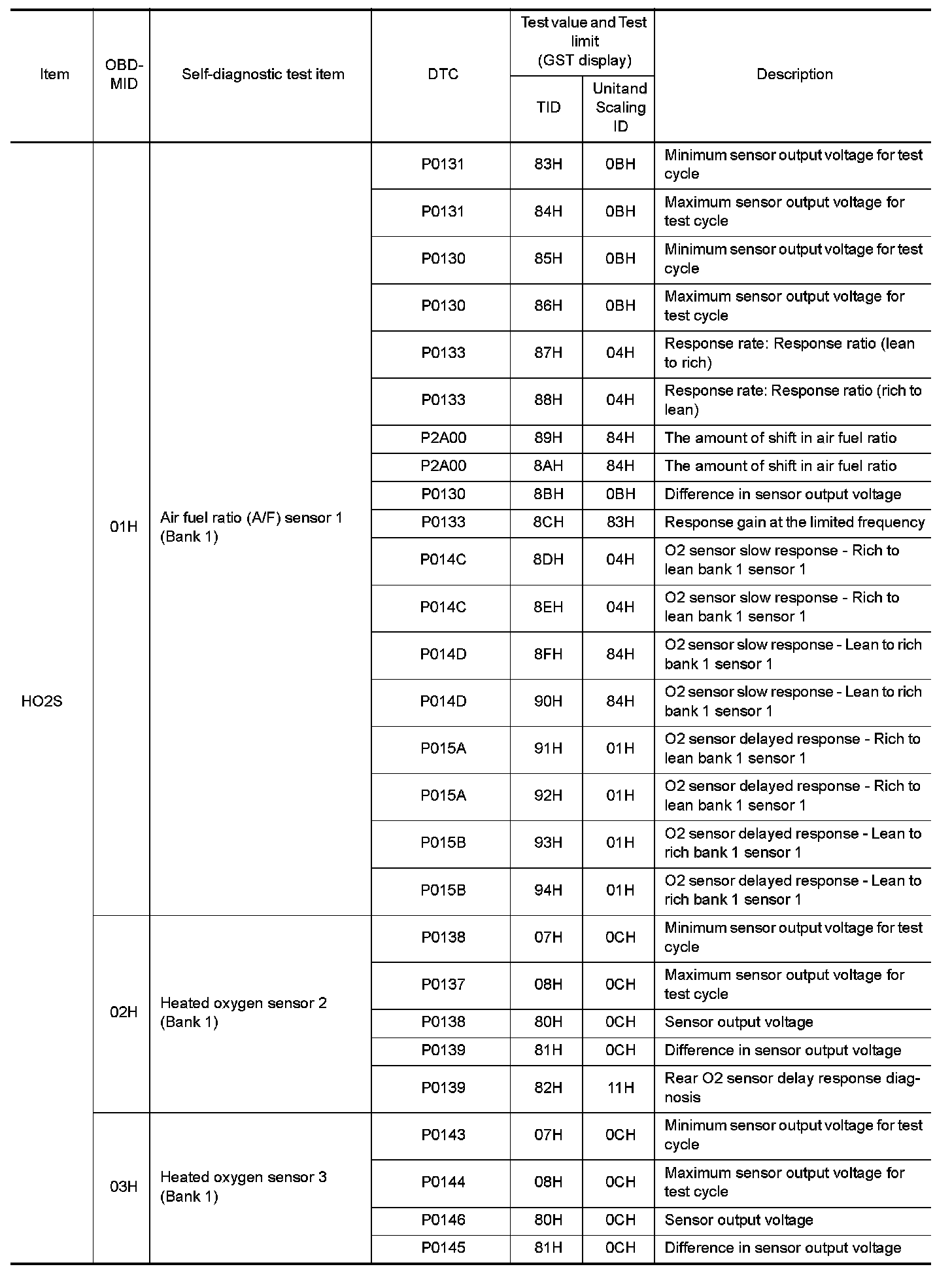 These data (test value and test limit) are specified by On Board Monitor ID (OBDMID), Test ID (TID), Unit and