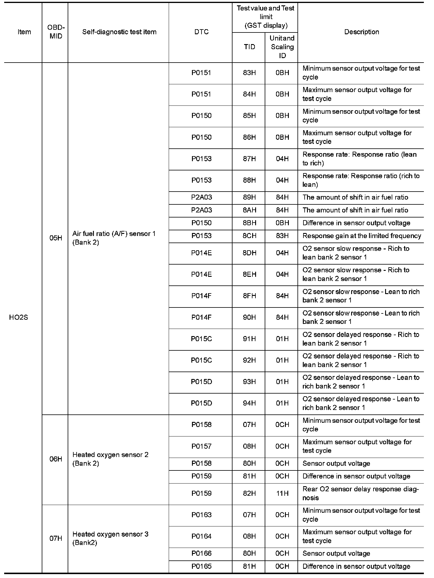 The following is the information specified in Service $06 of SAE J1979/ISO 15031-5.