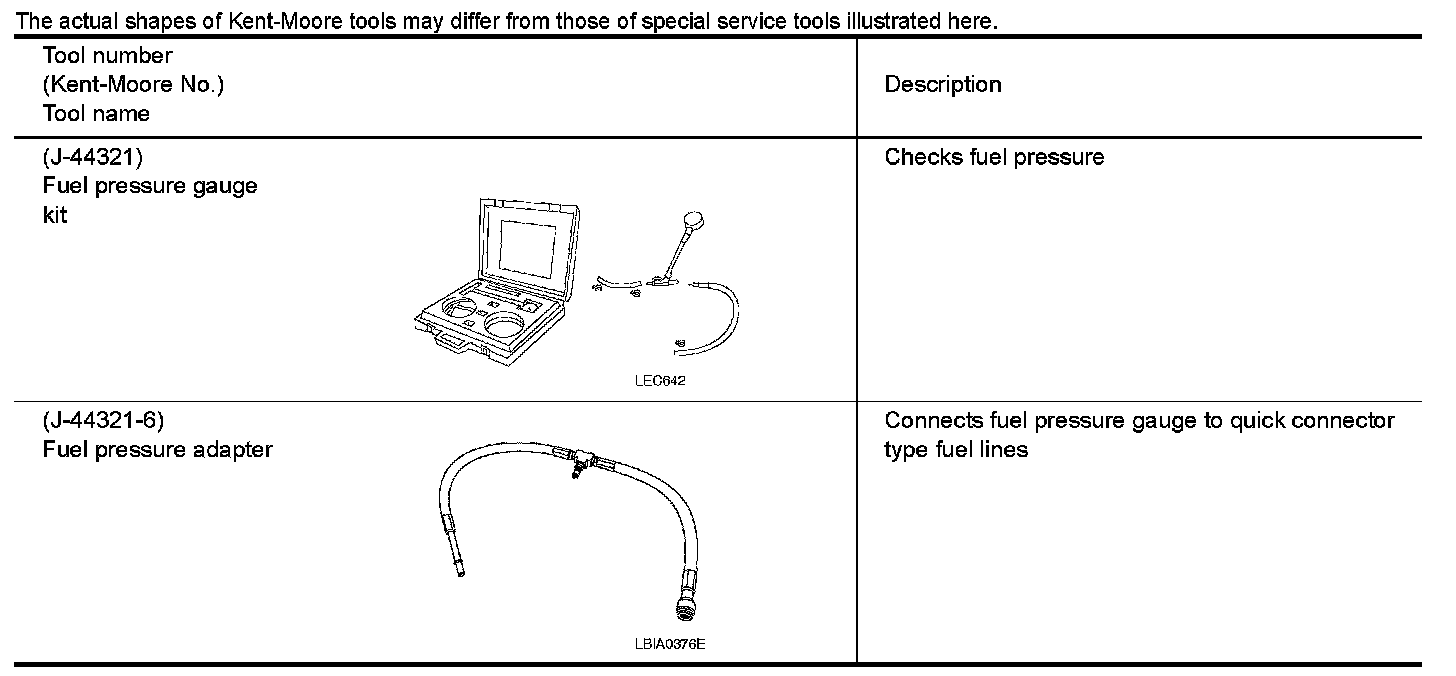 The actual shapes of Kent-Moore tools may differ from those of special service tools illustrated here.