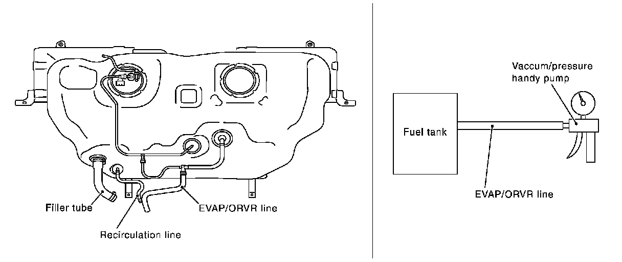 Check hoses and tubes between EVAP canister and refueling control valve for clogging, kinks, looseness and improper connection.