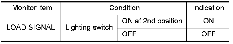 3.Select "LOAD SIGNAL" and check indication under the following conditions.