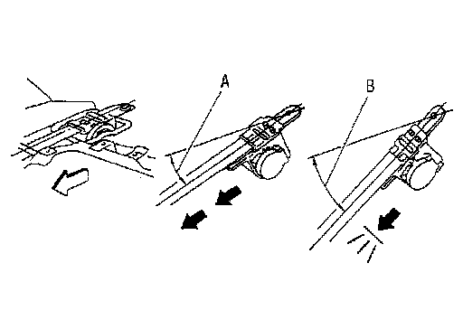 2.Slowly pull out webbing while tilting the retractor assembly forward from the mounted position without twisting the retractor assembly as shown in the illustration.