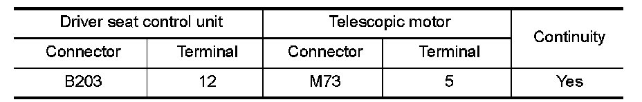 3.Check continuity between driver seat control unit harness connector and telescopic motor harness connector.