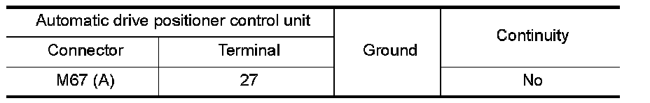 4.Check continuity between automatic drive positioner control unit harness connector and ground.