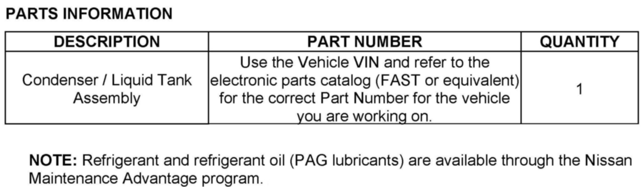 PARTS INFORMATION