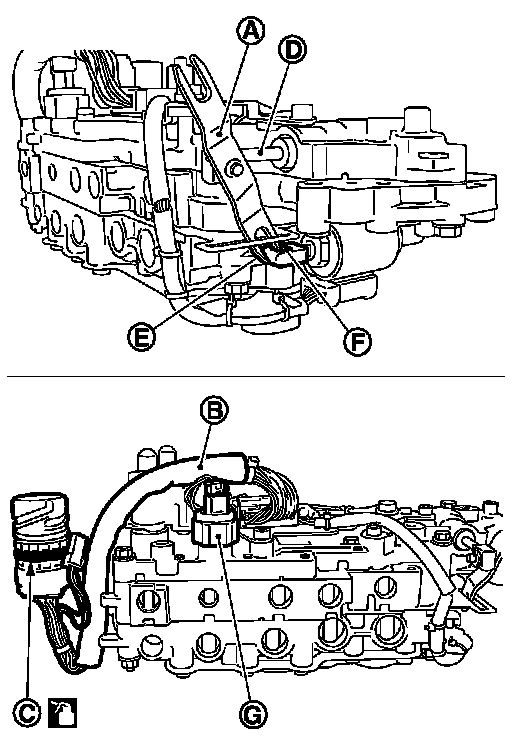 - Do not pinch the harness into between the control valve and the transaxle case.