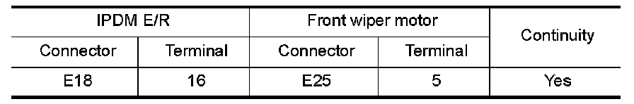 3.Check continuity between IPDM E/R harness connector and front wiper motor harness connector.