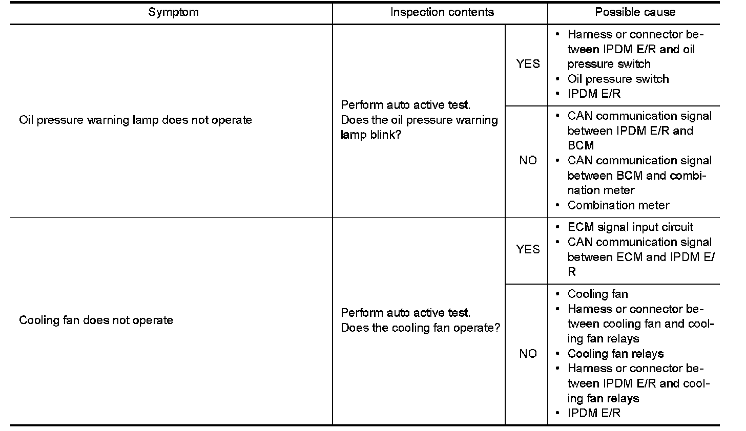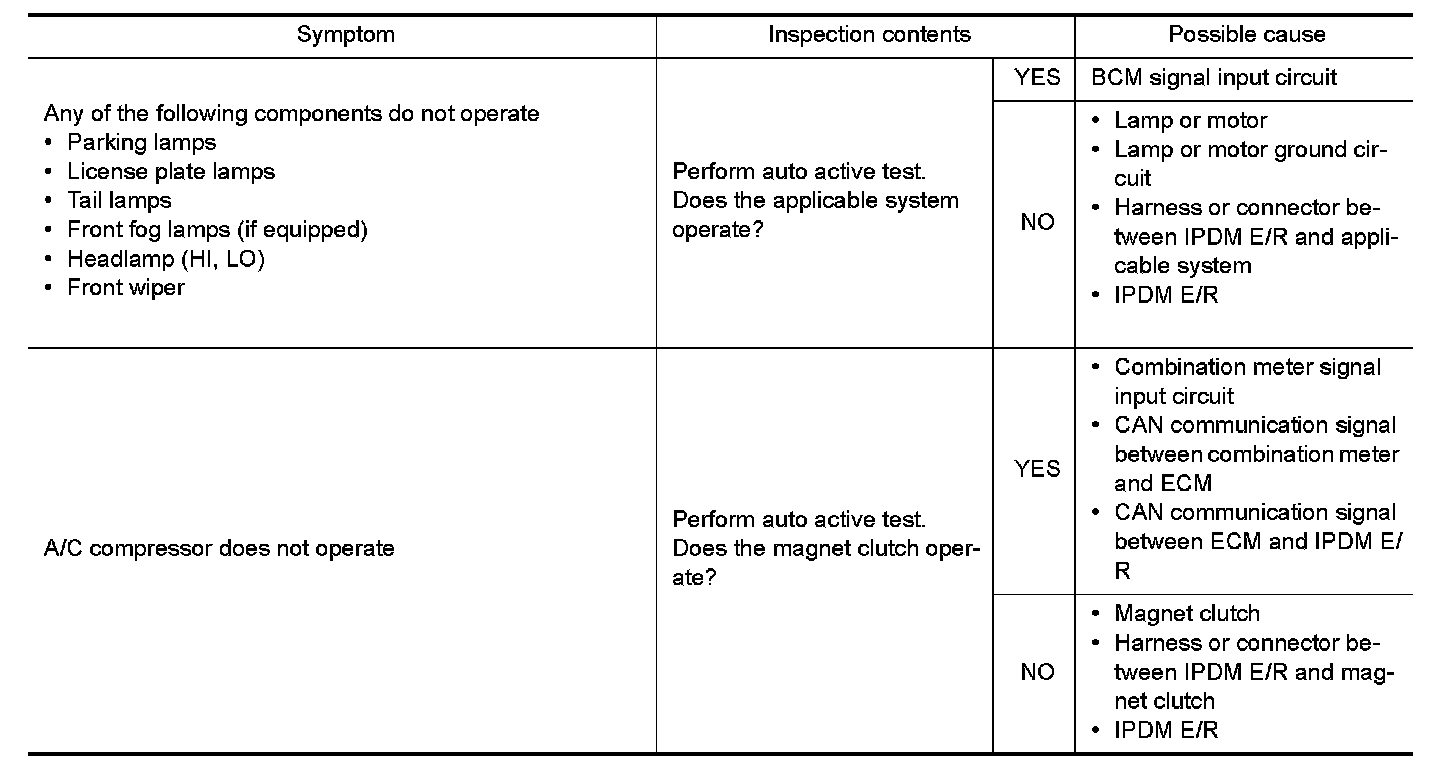 - The auto active test facilitates troubleshooting if any systems controlled by IPDM E/R cannot be operated.