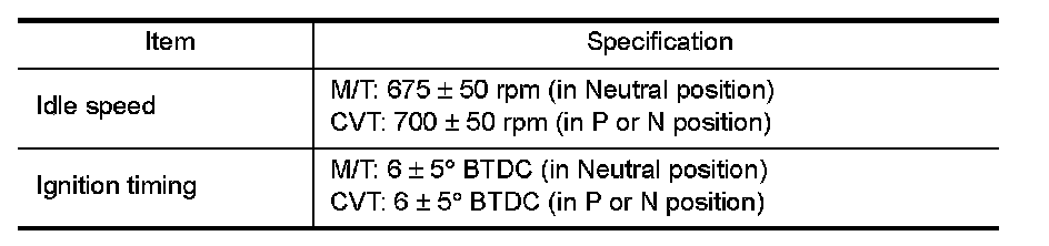 13.If idle speed and ignition timing are not within the specification, Idle Air Volume Learning will not be carried out successfully. In this case, find the cause of the incident by referring to the DIAGNOSTIC PROCEDURE below.