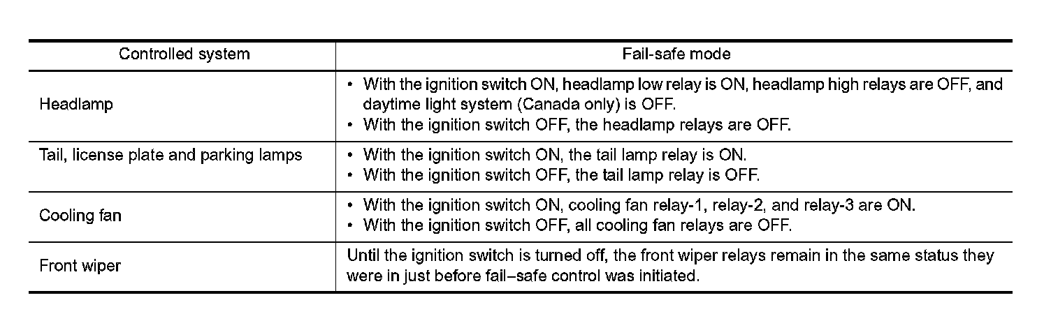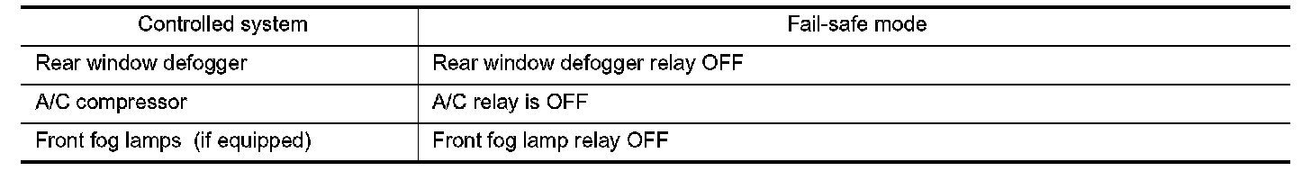 - Operation of control parts by IPDM E/R during fail-safe mode is as follows:
