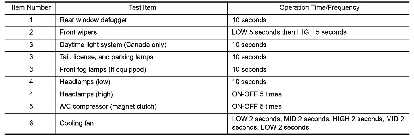 - In auto active test mode, operation inspection can be performed when IPDM E/R sends a drive signal to the following systems: