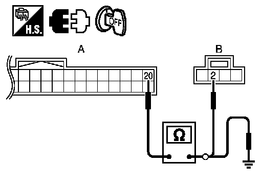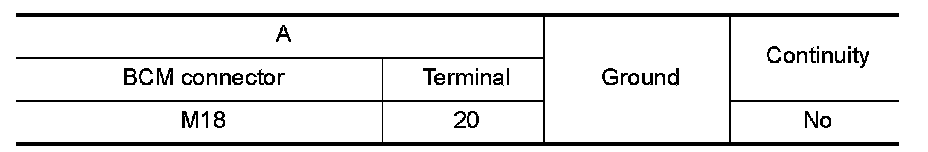 2.Check continuity between BCM connector (A) M18 terminal 20