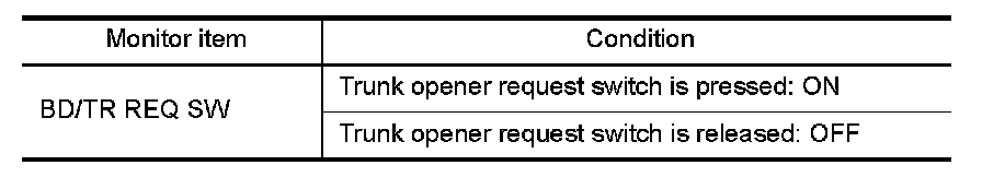 Check trunk opener request switch ("BD/TR REQ SW") in "DATA MONITOR" mode.