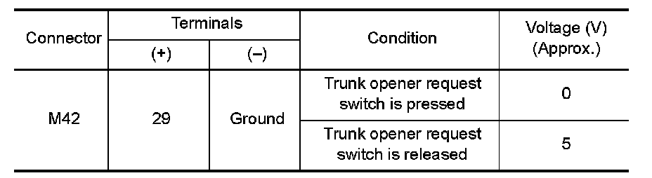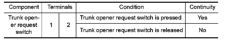 3.Check continuity between trunk opener request switch terminals