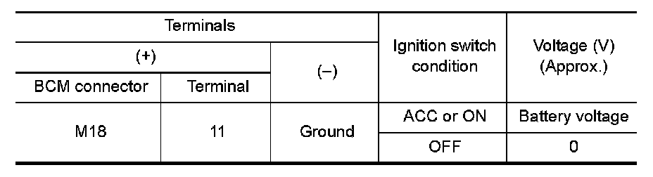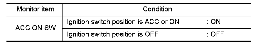 Check ACC switch ("ACC ON SW") in "DATA MONITOR" mode with CONSULT.