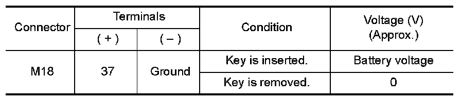 Check key switch "KEY ON SW" in DATA MONITOR mode with CONSULT. CONSULT Function (BCM).