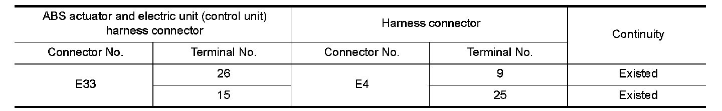 NO- Repair the main line between the ABS actuator and electric unit (control unit) and the harness connector E4.