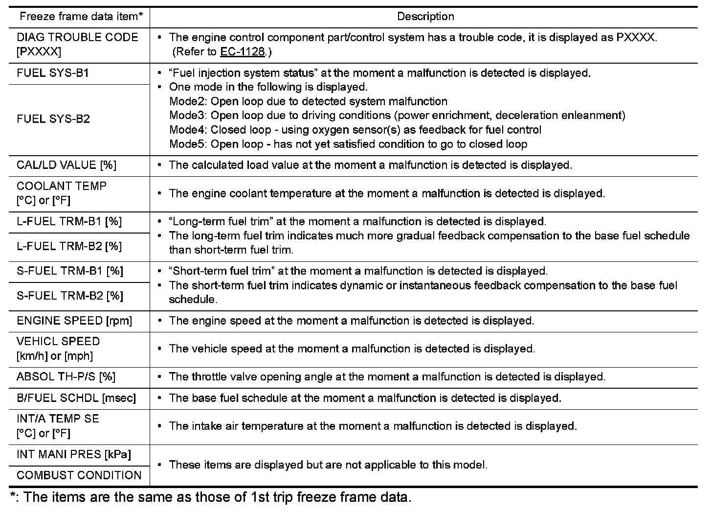 Regarding items of DTC and 1st trip DTC, Emission-Related Diagnostic Information.